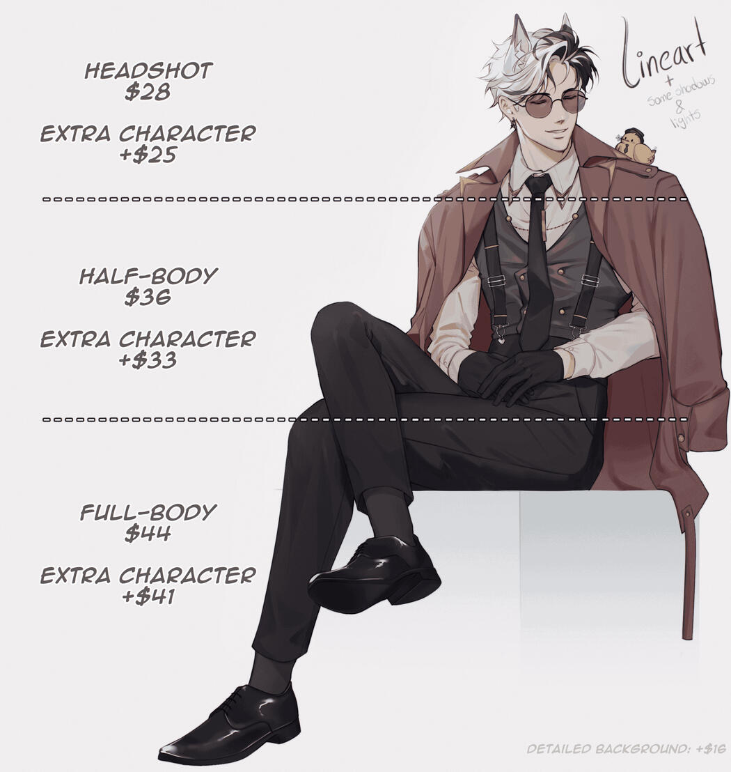 ♥Time for reference sheet commissions: 3 days-I will not attend on Saturdays and Sundays since they are my days of rest-PLEASE RESPOND QUICKLY WHEN SENDING THE SKETCH TO A "FULL COLORS" OR "REFERENCE SHEET" COMMITTEE (if you do not respond quickly or respond to me the next day after I have sent you the sketch and correction, your commission will not be completed in due time and will be postponed until another day when you can finish it, so if you want your commission to be delivered as soon as possible, you must respond quickly - maximum 2 hours -)PAYMENTS-Via paypalIMPORTANT: all payments involve a %10 commission for transfer, to find out the percentage you can multiply: price x 10= result /100= transaction fee-The payment is made in full before the commission begins (this is to avoid losing money in double payments and because I do not want the client to not want to make the full payment at some point and want to escape)REVISIONS-Only 5 minor corrections are allowed in the sketch (very drastic corrections will have extra charge)-COLOR corrections are ONLY allowed in flat color- corrections are not allowed when adding shadows and lights (full colors)DELIVERY-will be delivered in .png format-the drawing will have my signature (that is never removed)-will be delivered via gmail-The delivery time will depend on what commission I am in, in any case I will give a specific delivery dateEXTRA PAYMENT-commercial use: +%50 to final price-complex designs: +$15 to the final price (for example: Genshin Impact characters with their original clothing)-detailed backgrounds: +$15 extra dollars (flat color backgrounds are free)-NSFWINTELLECTUAL PROPERTY RIGHTS